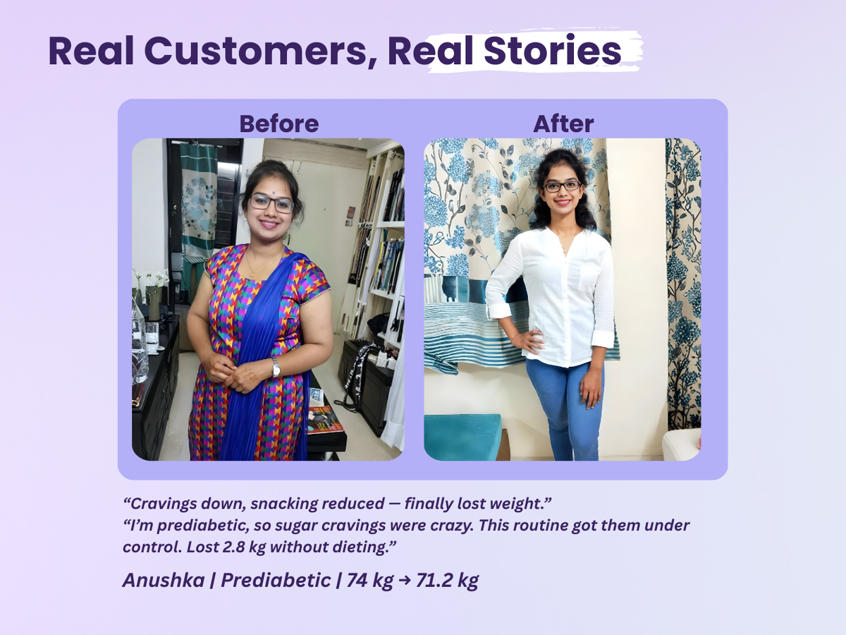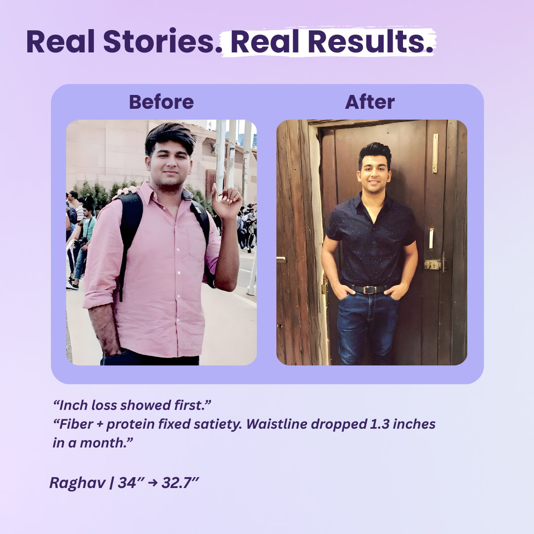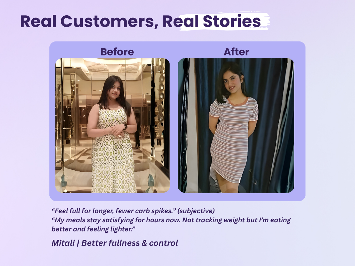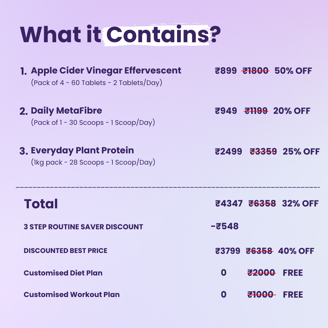 ACV controls sugar spikes, Fiber improves fullness, and Protein keeps you satisfied for hours.