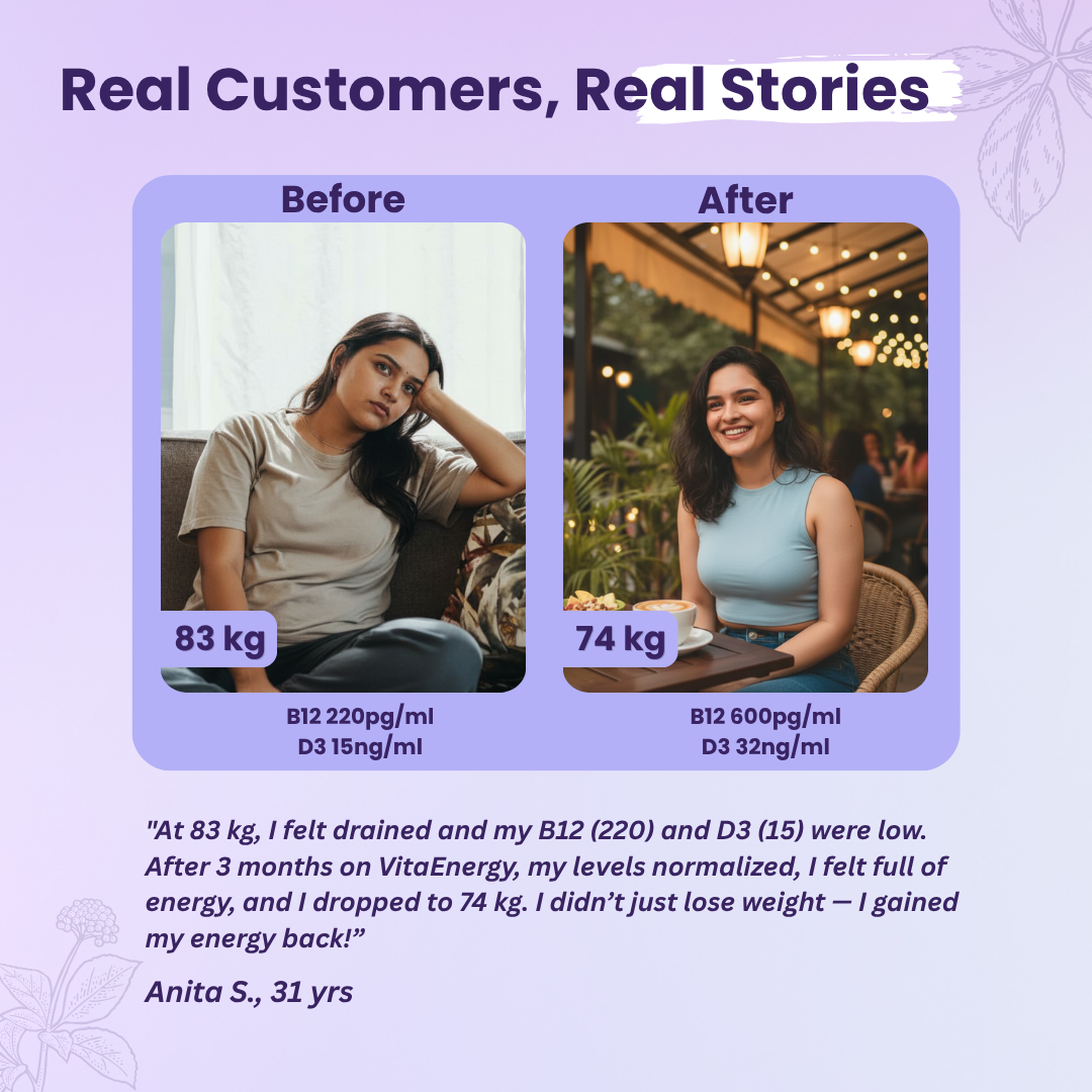 Vitamin B12 is essential for energy production, red blood cell formation, and nerve health. VitaEnergy uses 2.2 mcg of B12 sourced via fermentation, providing 100% of your daily requirement in a 100% vegetarian form. This ensures your body efficiently converts food into energy and keeps you active throughout the day.