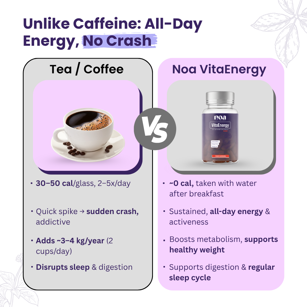 Panax Ginseng is an ancient Korean herb revered for boosting stamina, focus, and vitality. VitaEnergy includes 300 mg of high-quality Panax Ginseng, combining traditional Korean wisdom with modern science to naturally enhance energy, resilience, and mental clarity — a daily ritual for balanced, sustained energy.