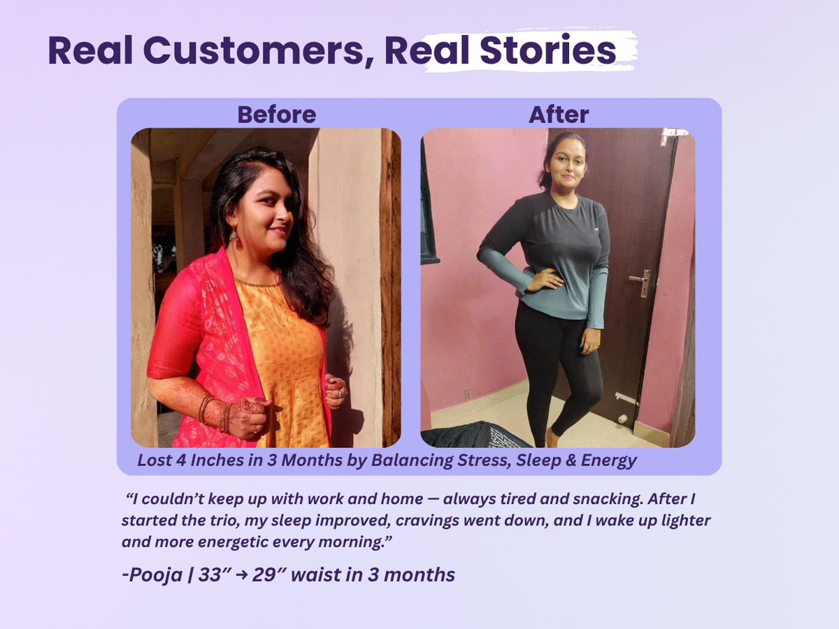 Improves sleep quality, lowers cortisol levels, and supports hormonal balance — all of which are critical for healthy metabolism and reduced belly fat.