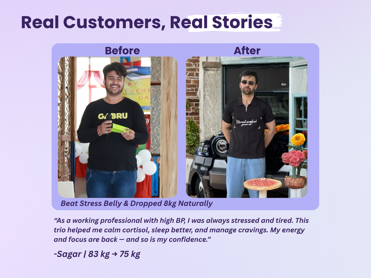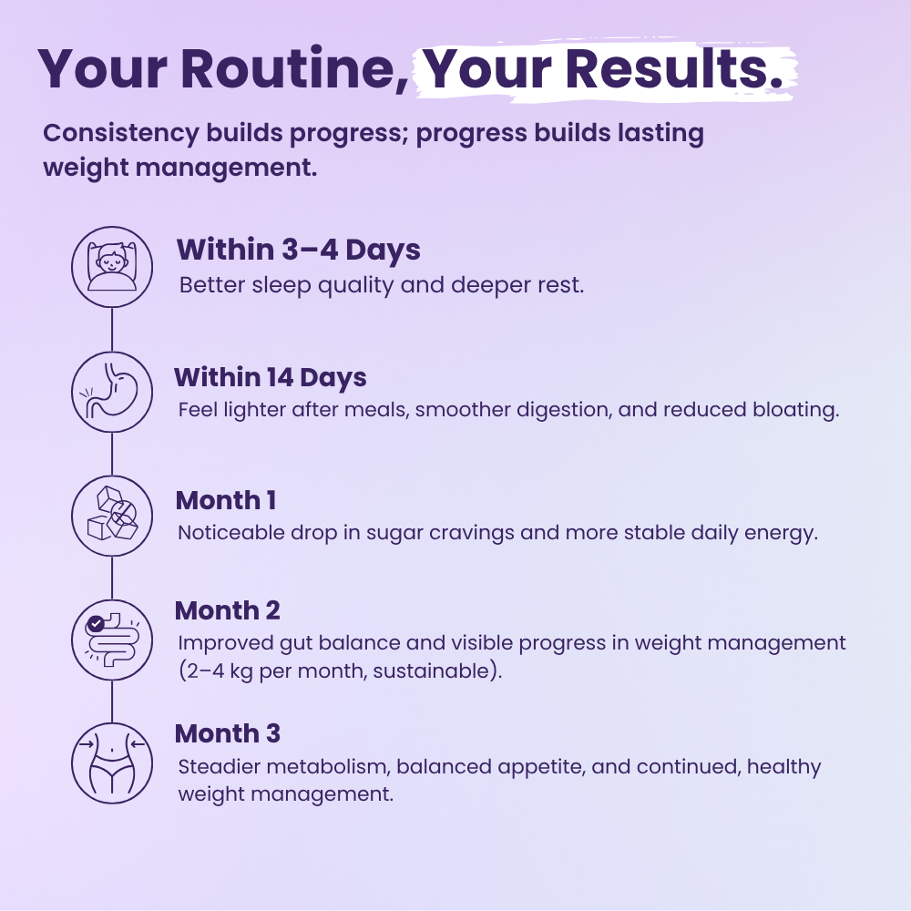 Balances gut bacteria, supports digestion, reduces hunger spikes, and helps manage calorie intake naturally — forming the foundation for better weight management.